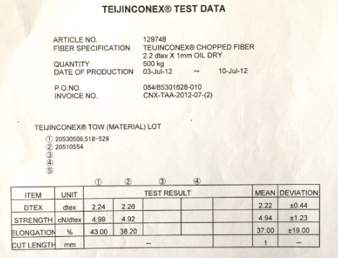 Teijinconex短纖維(mm) 線密度(dtex)