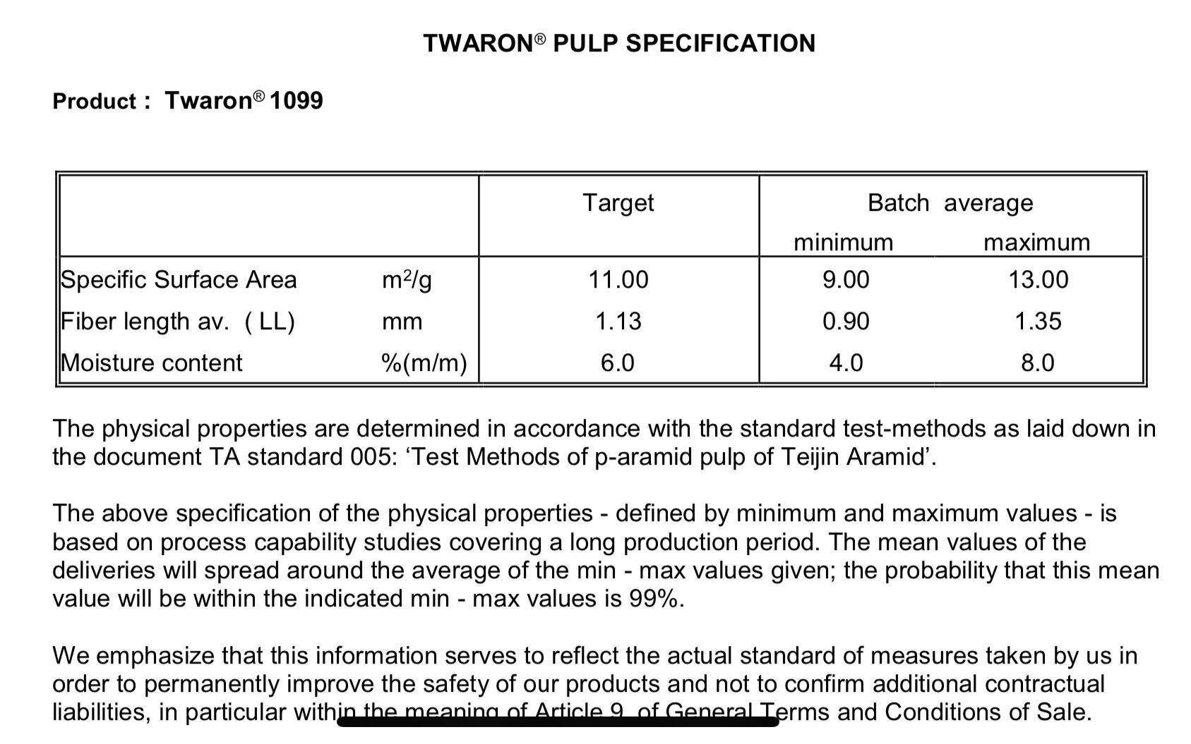 脫離,并防止在處理過行程中産生粉塵,這些是非微纖化的纖維所不能做到的。Twaron®漿粕還決定天然混合物的松散體積。