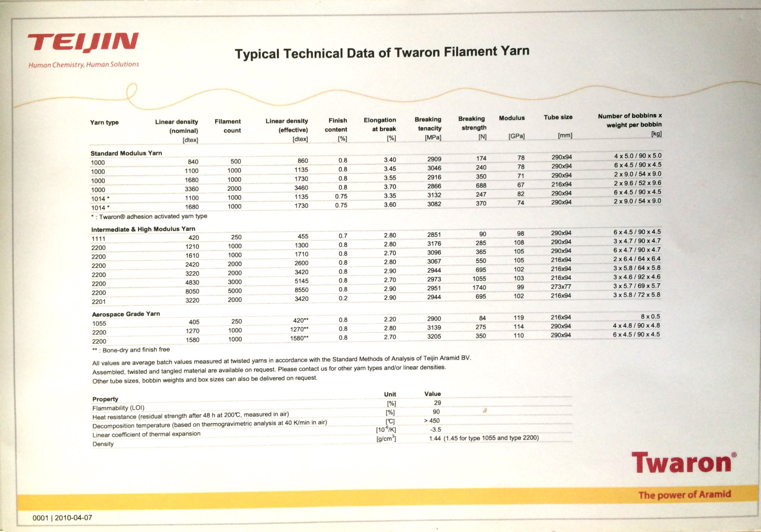 Twaron是一種高性能人造纖維,也是帝人芳綸公司推出的标志性産品。該産品集機械性能、耐化學腐蝕性、極佳的耐久性和熱穩定性等特性于一身。由于在多種應用中有諸多性能優勢,因此極受各行業親睐。