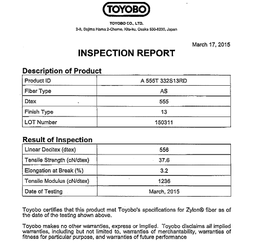 高端PBO纖維産品的強度爲5.8GPa(德國有報道爲5.2GPa),模量180GPa,在現有的化學纖維中最高;耐熱溫度達到600℃,極限氧指數68,在火焰中不燃燒、不收縮,耐熱性和難燃性高于其它任何一種有機纖維。主要用于耐熱産業紡織品和纖維增強材料。